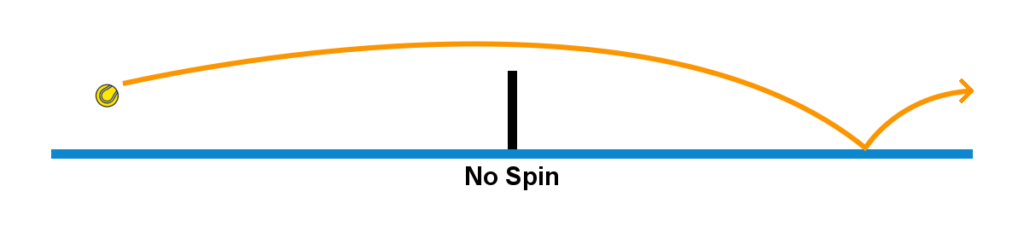 A ball hit with no spin, also known as a flat hit, does not rotate with any significant angular velocity as it flies through the air. Thus it does not experience a Magnus force. The ball does however experience an ordinary drag force that acts in the direction opposite of its velocity.