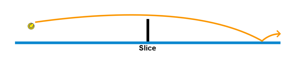 Slicing the ball allows the player to hit the ball to a precise location in the opponents court. However, due to the way slice shots are hit, if a player attempts to slice a ball that is moving to fast, or hit a slice shot too hard, he or she can easily hit the ball out of bounds.